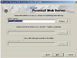 步骤: 下载安装88IP动态IP域名解析系统,并注册为88IP用户 安装PWS 配置PWS 1、下载安装88IP动态IP域名解析系统,并注册为88IP用户 如果您使用的是标准版请参考标准版使用流程 如果您使用的是标准版请参考专业版使用流程 2、安装PWS 安装之前 Personal Web Server(PWS)包含在Windows 98安装盘中,如果您要使用PWS构建WEB站点,请准备 Windows 98安装盘。 安装PWS 1)、执行光盘目录“F:\add-ons\pws\setup.exe”的安装程序,点击“确定” 2)、选择“下一步” 3)、请选择“标准”安装选项  4)、选择“默认主目录”或者浏览选择自定义的主目录,点击“下一步”  5)、如果有提示需要Windows安装盘,请放入 6)、程序自动完成安装过程 3、配置PWS 1、重新启动计算机后,鼠标右键点击系统托盘中的“Personal Web Server Icon”图标  2、选择“个人Web管理器”左侧的“发布”按钮,点击后根据 发布向导完成Web页面的设定 3、完成向导步骤后,点击"保存新的修改"按钮,您将看到建好的网站 4、请确认您的88IP客户端正常运行